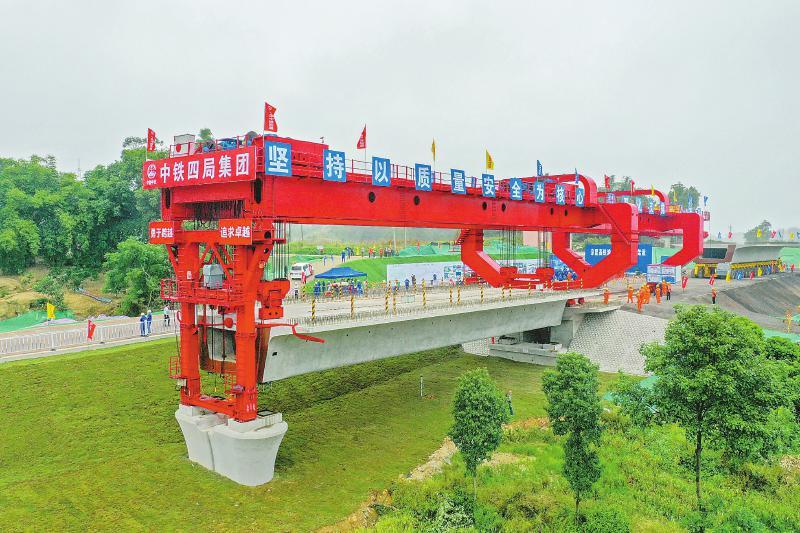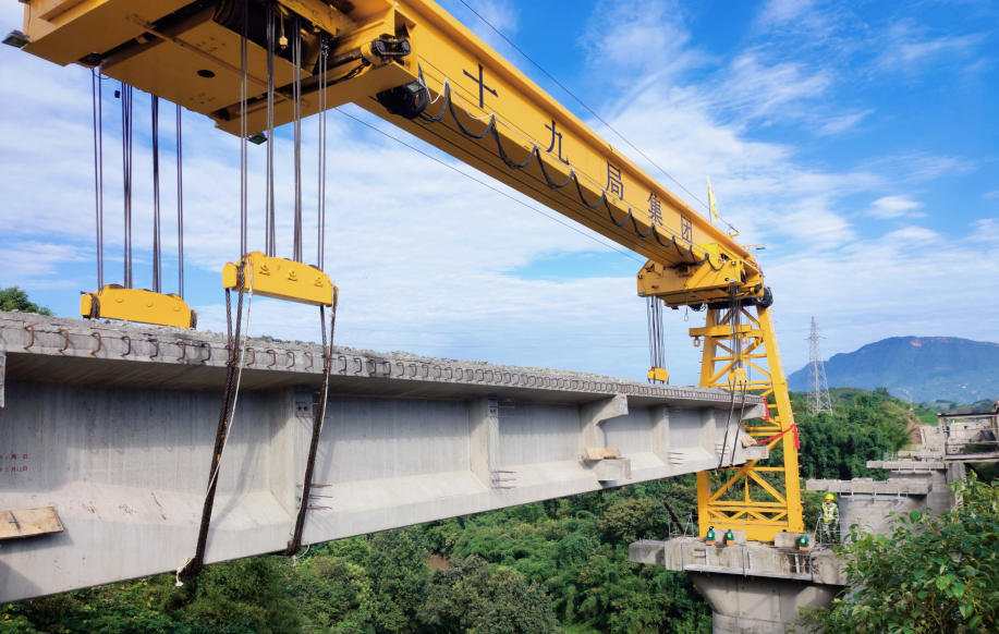 10月9日,渝昆高铁首孔箱梁成功架设。牟科 摄
