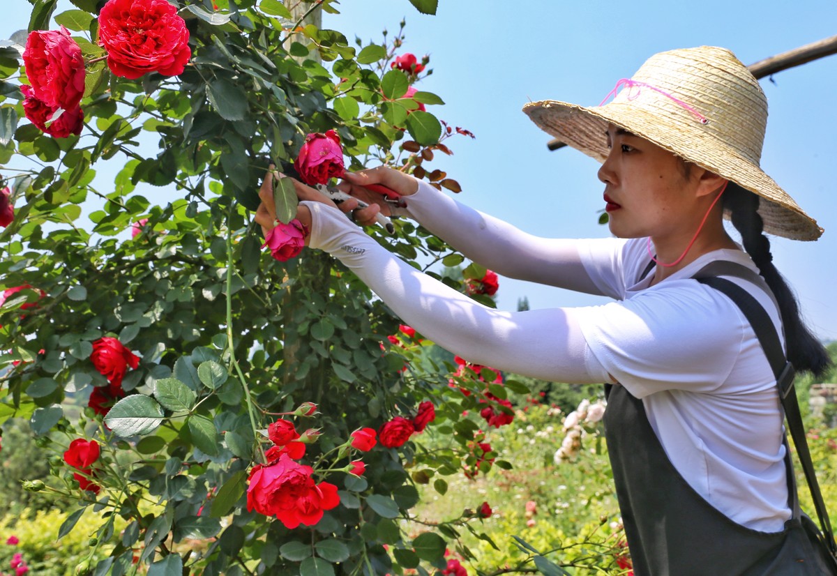 4月30日,乐天派玫瑰园负责人刘雪琴正在打整花园。周梦颖 摄