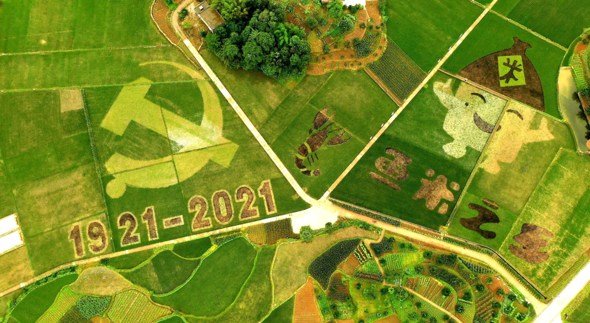 5月25日,泸州市合江县白米镇用400亩彩色水稻作画,献礼党的生日。合江融媒体中心供图