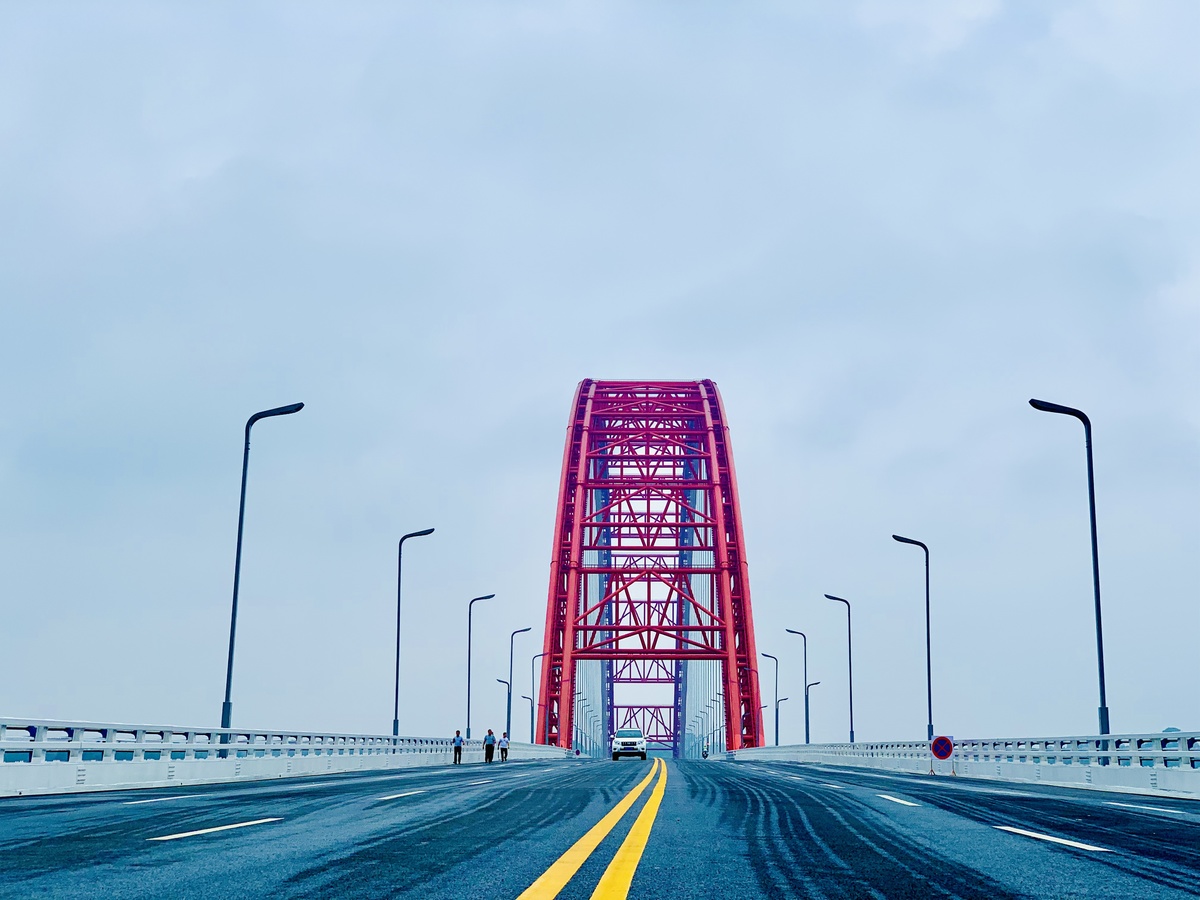 6月25日,经过4年建设,世界最大跨径的飞燕式钢管混凝土系杆拱桥——合江长江公路大桥建成通车。 张其 摄