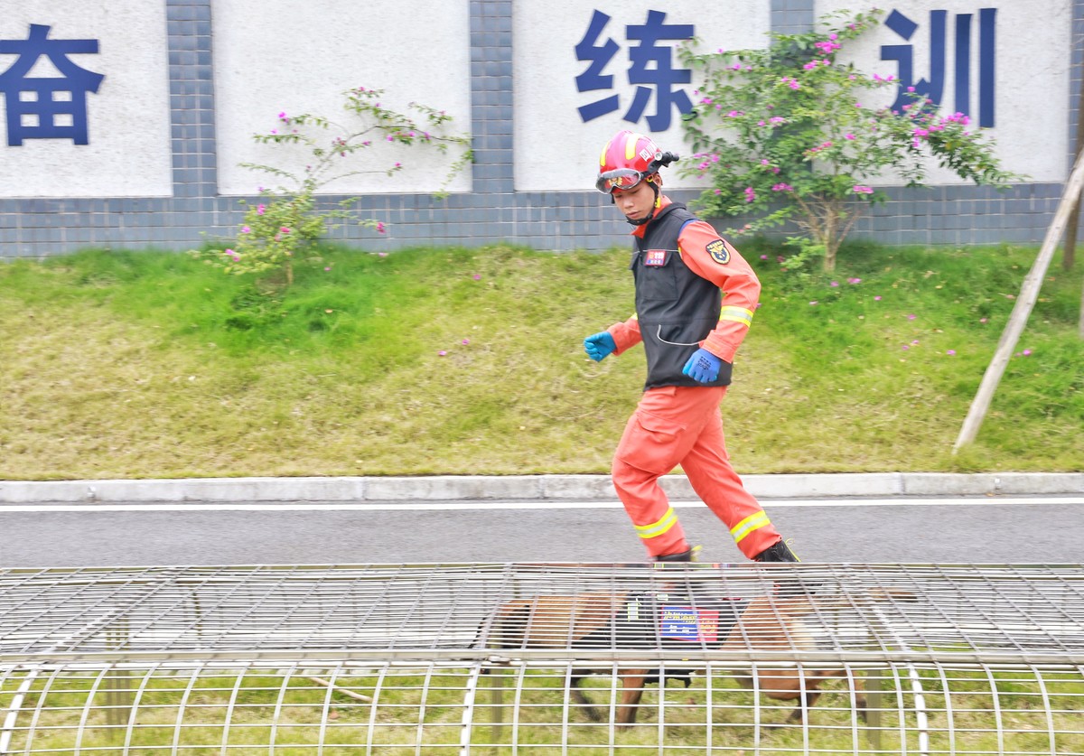 10月25日,泸州消防史上首支搜救犬队内,搜救犬妞妞正在训练。周梦颖 摄