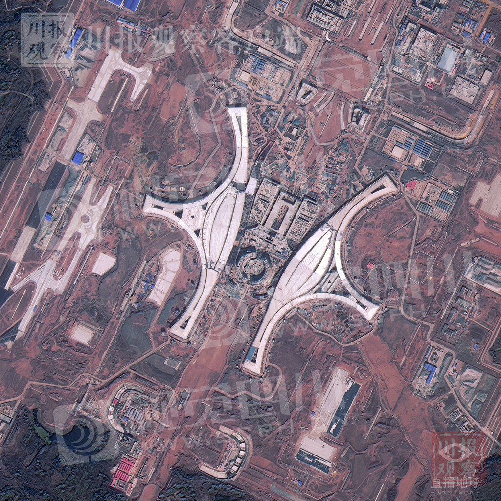 卫星图片,机场航站楼在万米高空中清晰可见。(摄于2020年4月)