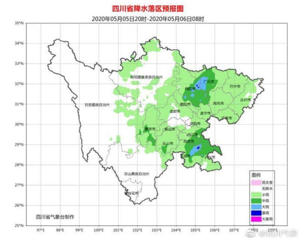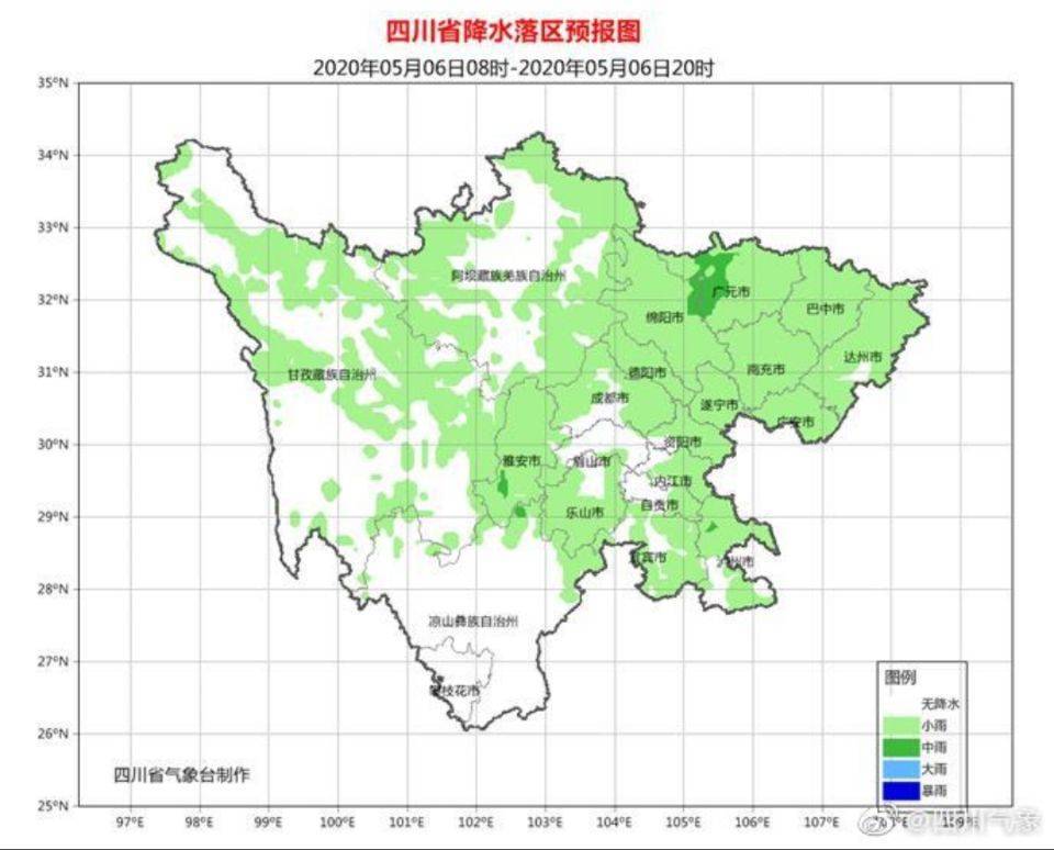 5月6日20时到7日20时,四川盆地北部有大到暴雨。