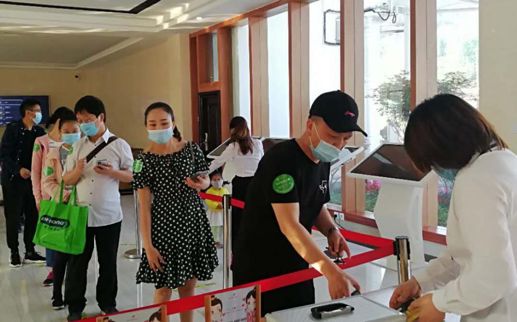“早上好!欢迎来到天台山,请您出示健康码或通用绿码。”在景区游客中心,工作人员为每一位进入景区的游客扫码,在该景区售票大厅里,取票的游客有序地排着队,大厅外,大巴车、自驾车辆在工作人员指挥下有序停放。景区还临时增派了30余名保安人员,协助引导游客间隔入园、有序排队,扫码测温,有序进入景区。