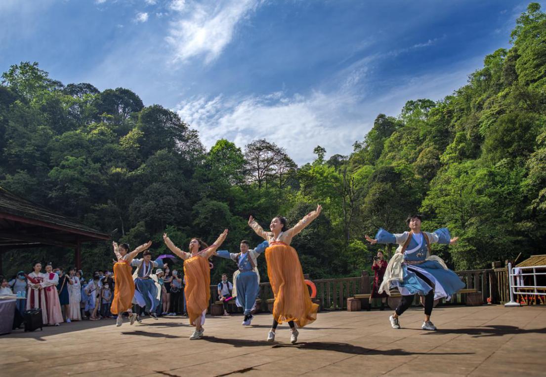 除了景区智慧旅游保障假期旅游平稳有序,景区准备了丰富多彩的旅游活动,在开敞空间有序推出森林音乐展演、国家非物质文化遗产展示、森林汉服秀、水墨丹青书画展、网红打卡等活动,丰富游客体验。五一期间,景区萤火虫成了网红,游客惊呼于漫山萤火虫,流连忘返。同时,景区还推出萤火虫系列文创产品,满足游客需求。