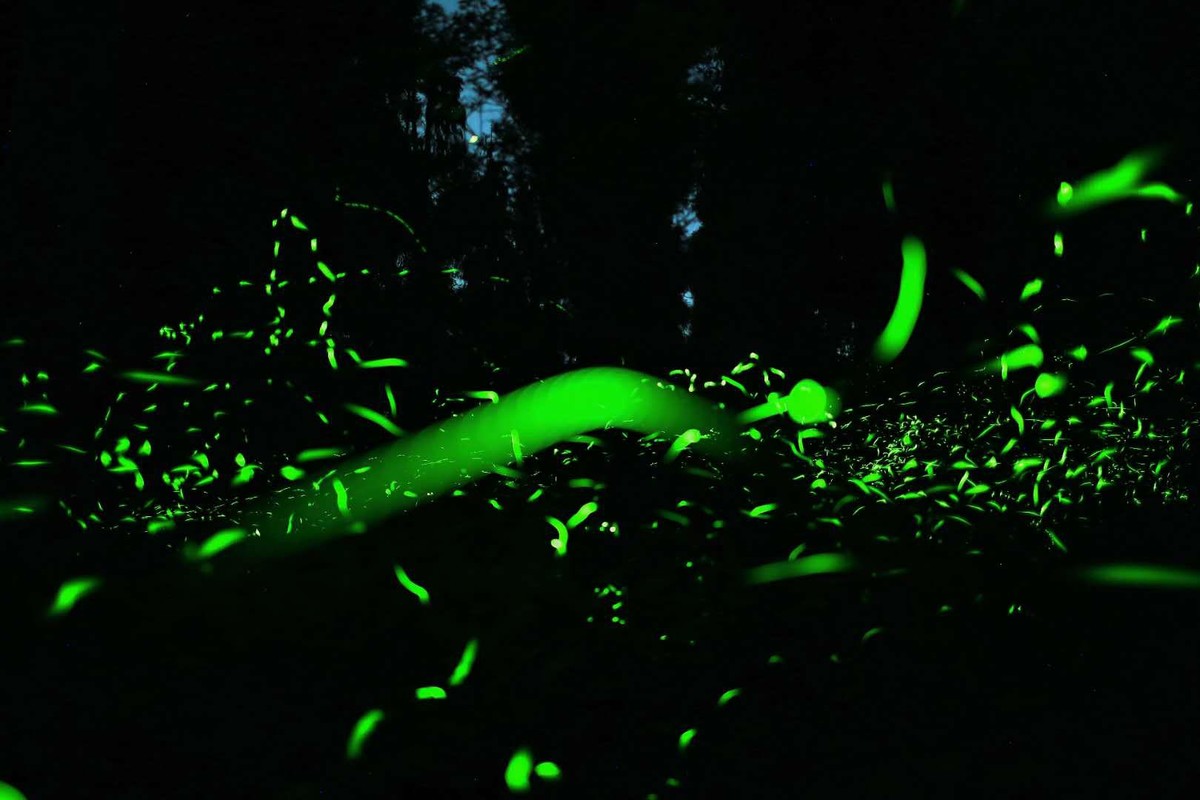 针对少数未预约前往景区游客,咨询人员耐心解释;夜间,景区秩序维护人员继续奋战,疏导交通,保证游客有序观赏萤火虫;景区保洁人员按时对公共设施消毒,为游客提供舒心安心的游览环境。