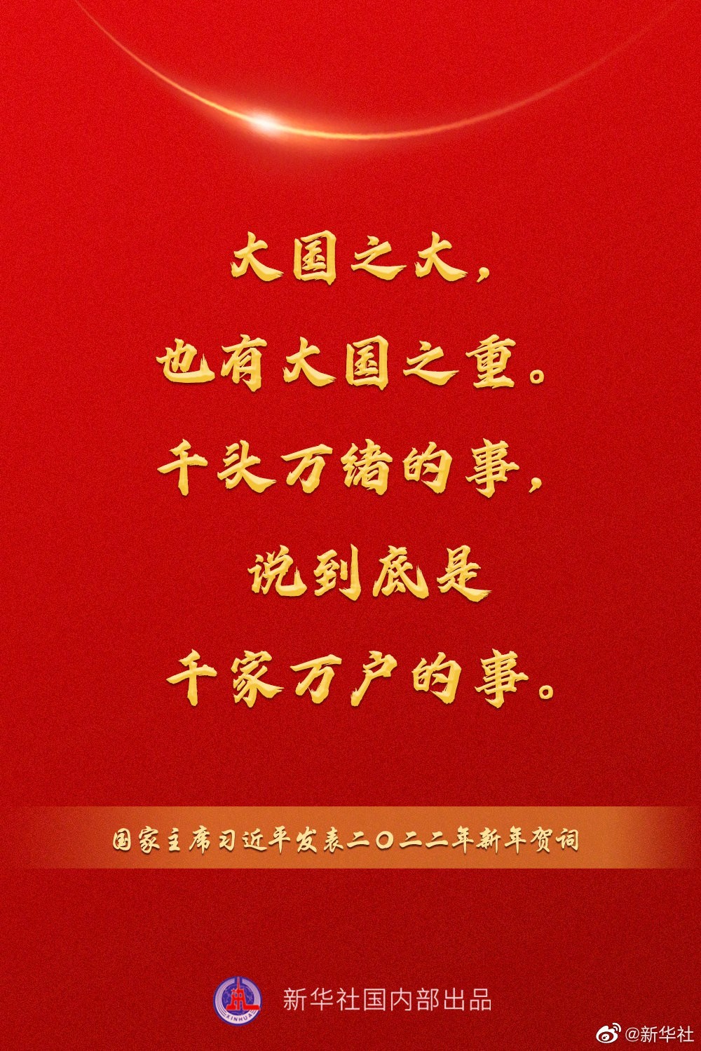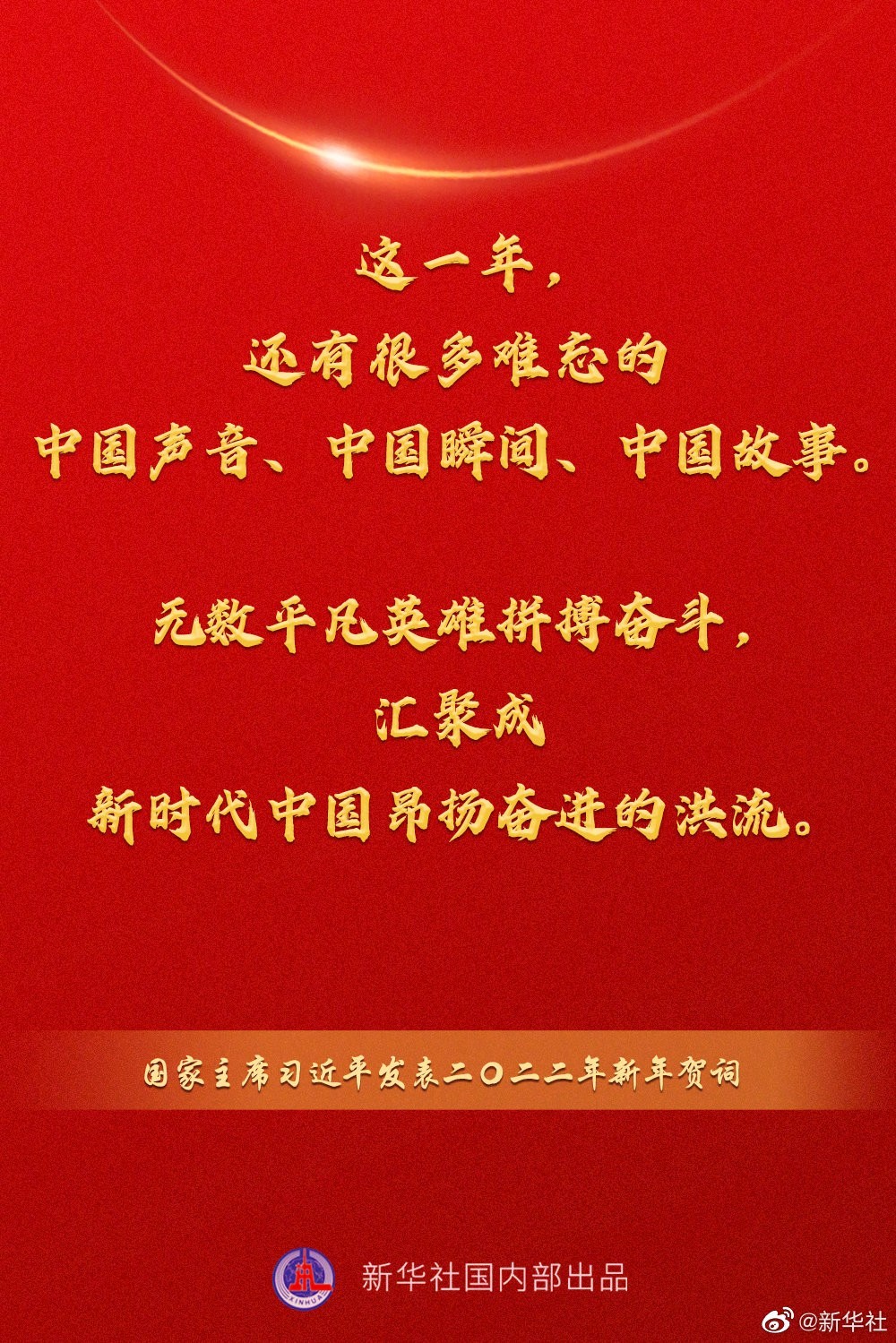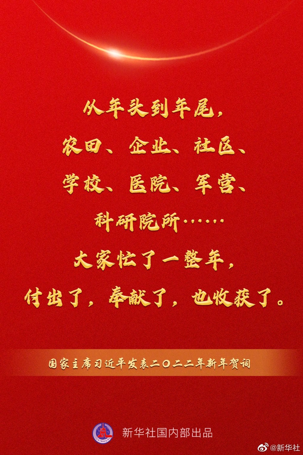 国家主席习近平发表二〇二二年新年贺词,一起来看金句。