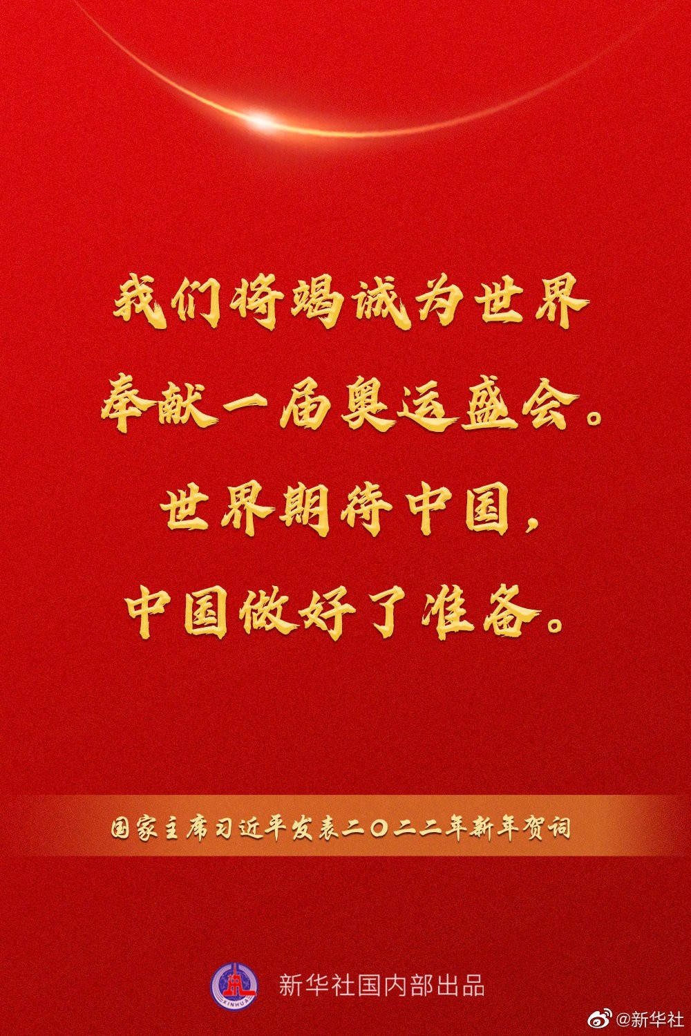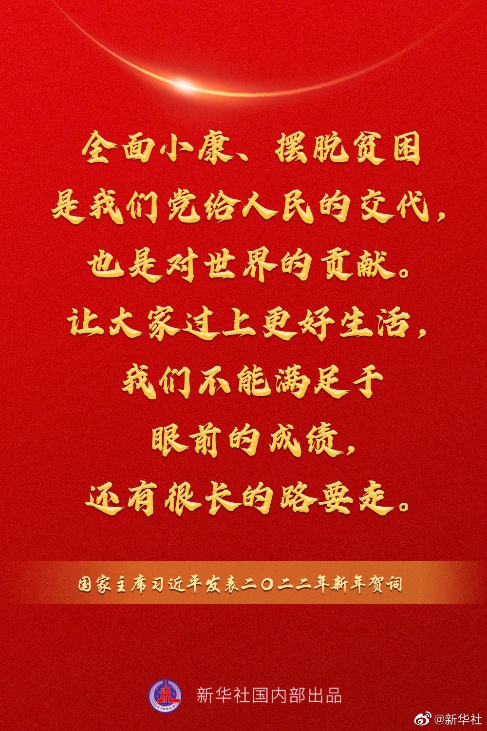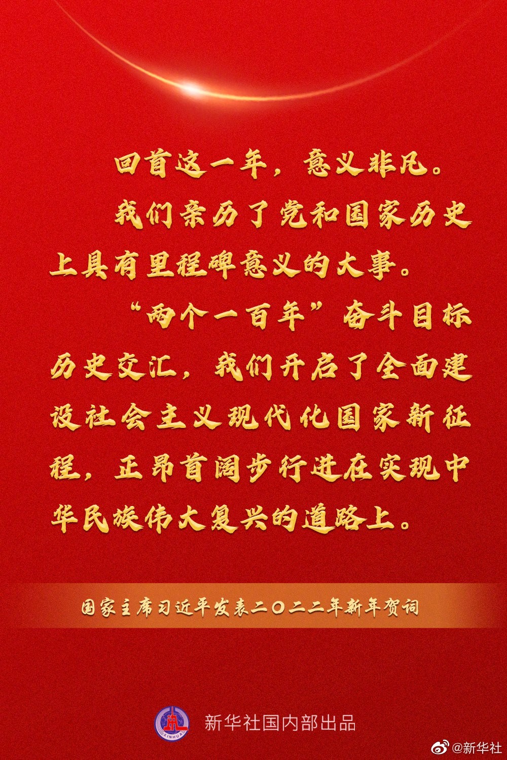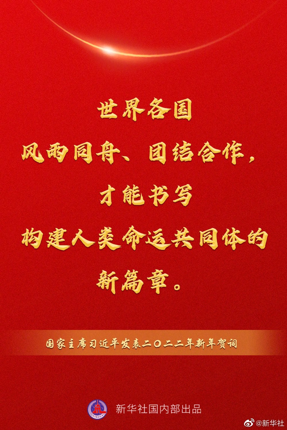 国家主席习近平发表二〇二二年新年贺词,一起来看金句。