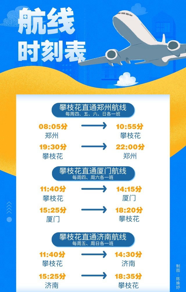 5月6日,记者从攀枝花至郑州、厦门、济南航线开通信息新闻发布会上获悉,明日起,攀枝花直飞郑州、厦门航线将首航, 5月8日,攀枝花直飞济南航线将首航。