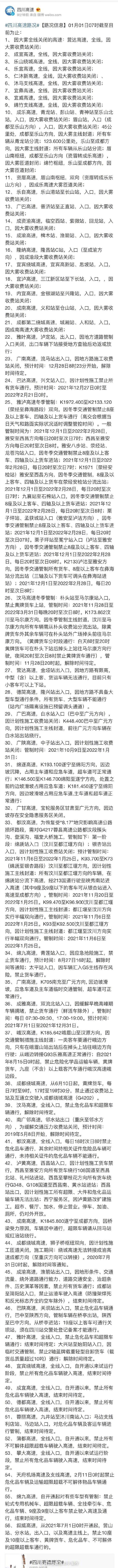 1月1日,四川省交通运输厅高速公路管理局官方微博发布最新路况,01月01日07时截至目前为止: