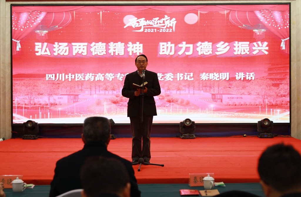 秦晓明在讲话中表示,本次签约既是贯彻上级党组织部署的巩固党史教育成果的政治自觉,也是坚持抓党建、促发展,利用红色资源,为党育人、为国育才使命的思想自觉;希望合作三方协同力量,排出任务书、时间表、路径图,把签约内容一件一件做实做细做好,成为始终如一的行动自觉。我们将通过采取由小到大、由易到难的多种方式,在全县的卫生人才培养以及包括老年康养服务等重点环节上整合资源,力争走在成渝双城经济圈中医药卫生行业校地企合作的前列。