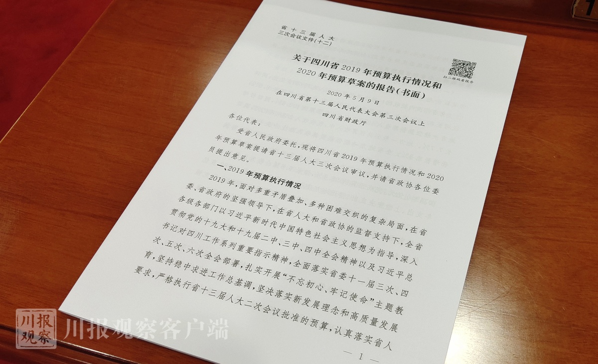 5月9日上午,四川省第十三届人民代表大会第三次会议在成都开幕。《关于四川省2019年预算执行情况和2020年预算草案的报告》以书面方式提交省第十三届人民代表大会第三次会议审议,并请省政协委员提出意见。
