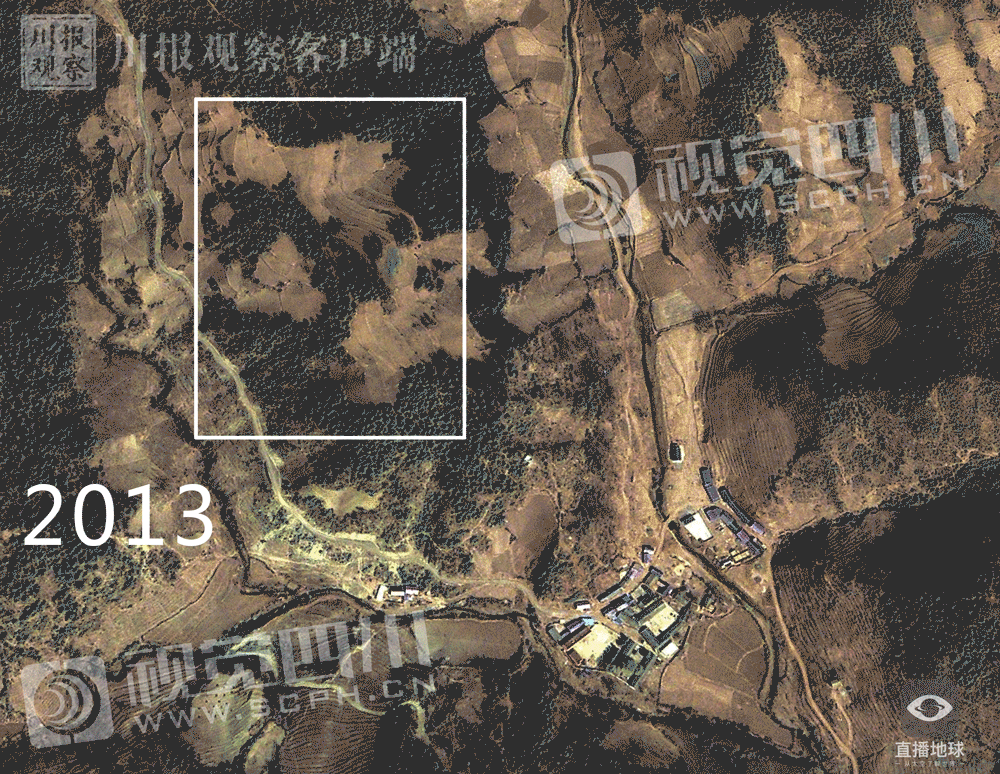 大凉山是全国深度贫困地区,我们跟着卫星视角来到昭觉县三岔河乡三河村。
