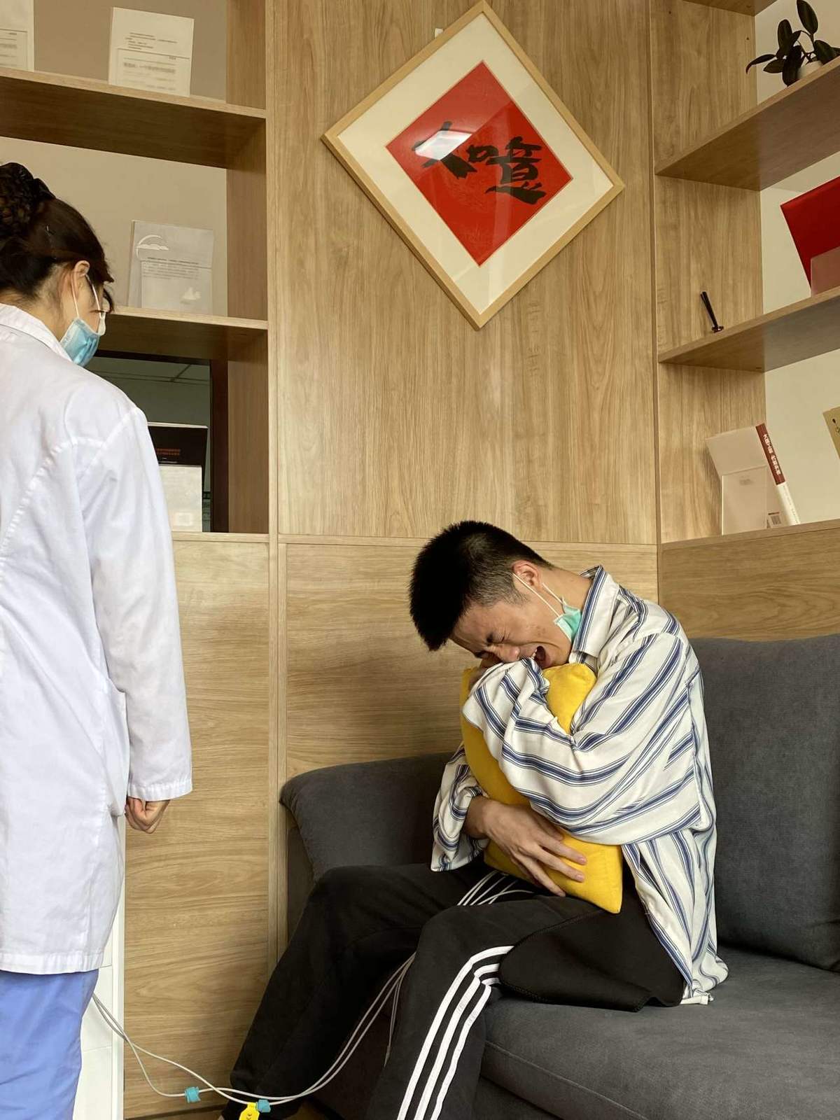 省第一建筑工程有限公司职工曾诚说,这次分娩阵痛体验只承受到了6.5级,离母亲分娩阵痛的12级还差很多,深刻体会到母亲十月怀胎的不容易。“分娩太难了,太痛了!所以,在母亲节来临之际,要给妈咪一个surprise(惊喜) !爱你哟,我的母亲大人!”