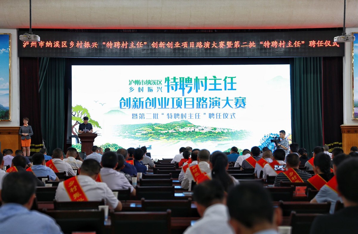 泸州市纳溪区乡村振兴“特聘村主任”创新创业项目路演大赛暨第二批“特聘村主任”聘任仪式现场。周梦颖摄