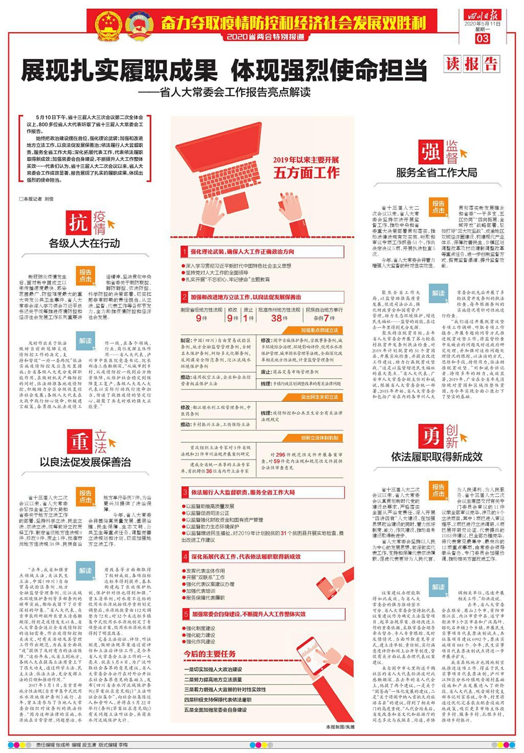 及时作出关于依法做好当前新冠肺炎疫情防控工作的决定,支持和督促“一府一委两院”依法实施疫情防控及应急处置措施;全省各级人大充分发挥职能作用,在做好机关严格防控的同时,依法助推各地疫情防控,积极助力分区分级恢复经济社会发展;各级人大代表在大战中践行初心使命,积极建言献策,奋勇投入抗击疫情工作一线,在各个领域、行业、岗位发挥主体作用……省人大代表、泸州市中医医院党委书记、院长郑海三感触颇深,“从城市到乡村,从疫情防控一线到后方物资保障,从维护社会稳定到保障复工复产,各级人大及人大代表以实际行动践行使命担当,传递了战胜疫情的坚定信心,凝聚了共克时艰的强大正能量。”