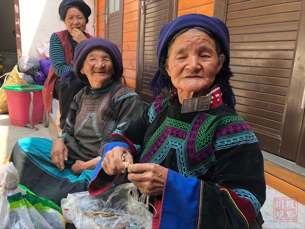 今年70岁的阿子日哈某是“悬崖村”上搬下来的年龄最大的村民,她很少坐小汽车,很担心自己晕车,影响了搬家,所以提前吃一些“晕车药”。