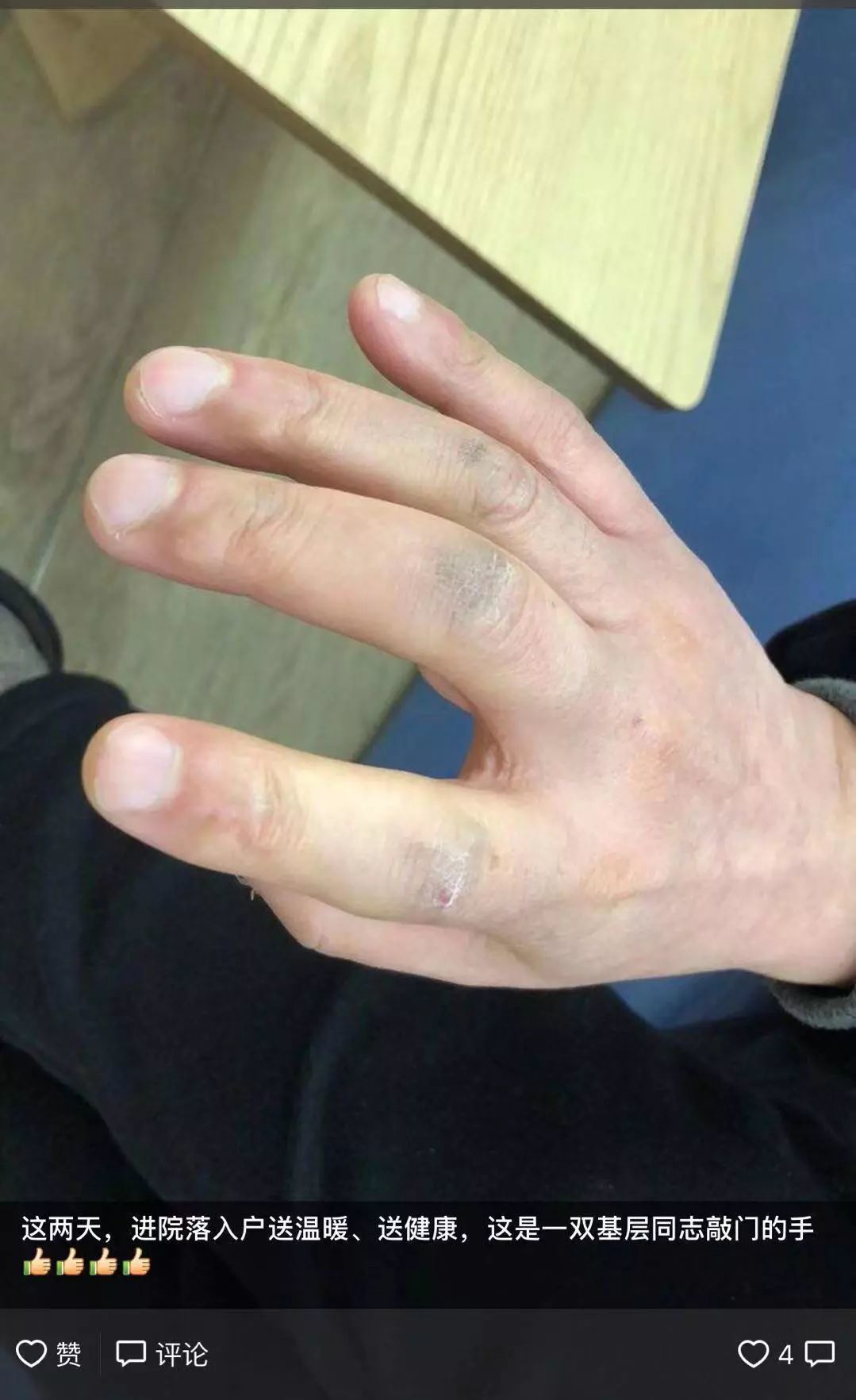大年初一,一张手部特写照片被频繁转发,照片中,手指关节明显变黑,食指破皮。