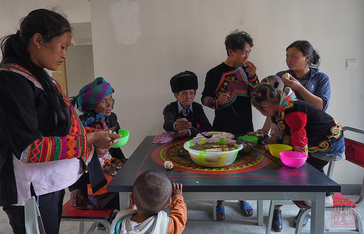 崭新的餐桌上,“悬崖村飞人”某色拉博一家人和年迈的父母双亲还有妹妹某色拉希一家陪伴左右。一大家子吃得很香,笑声爽朗,“这是家里的味道。”