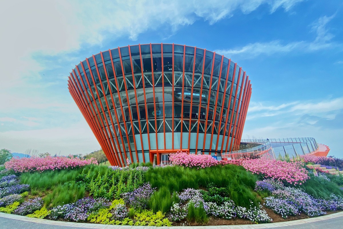 同样新晋为网红打卡地标的,还有今年元旦迎客的成都龙泉山城市森林公园丹景台“城市之眼”。此前,一组航拍图就已在网上广为传播:绿色森林之中,橙红色钢体建筑螺旋向上,从高空俯瞰就像一只眼睛,中间还镶嵌着太阳神鸟。