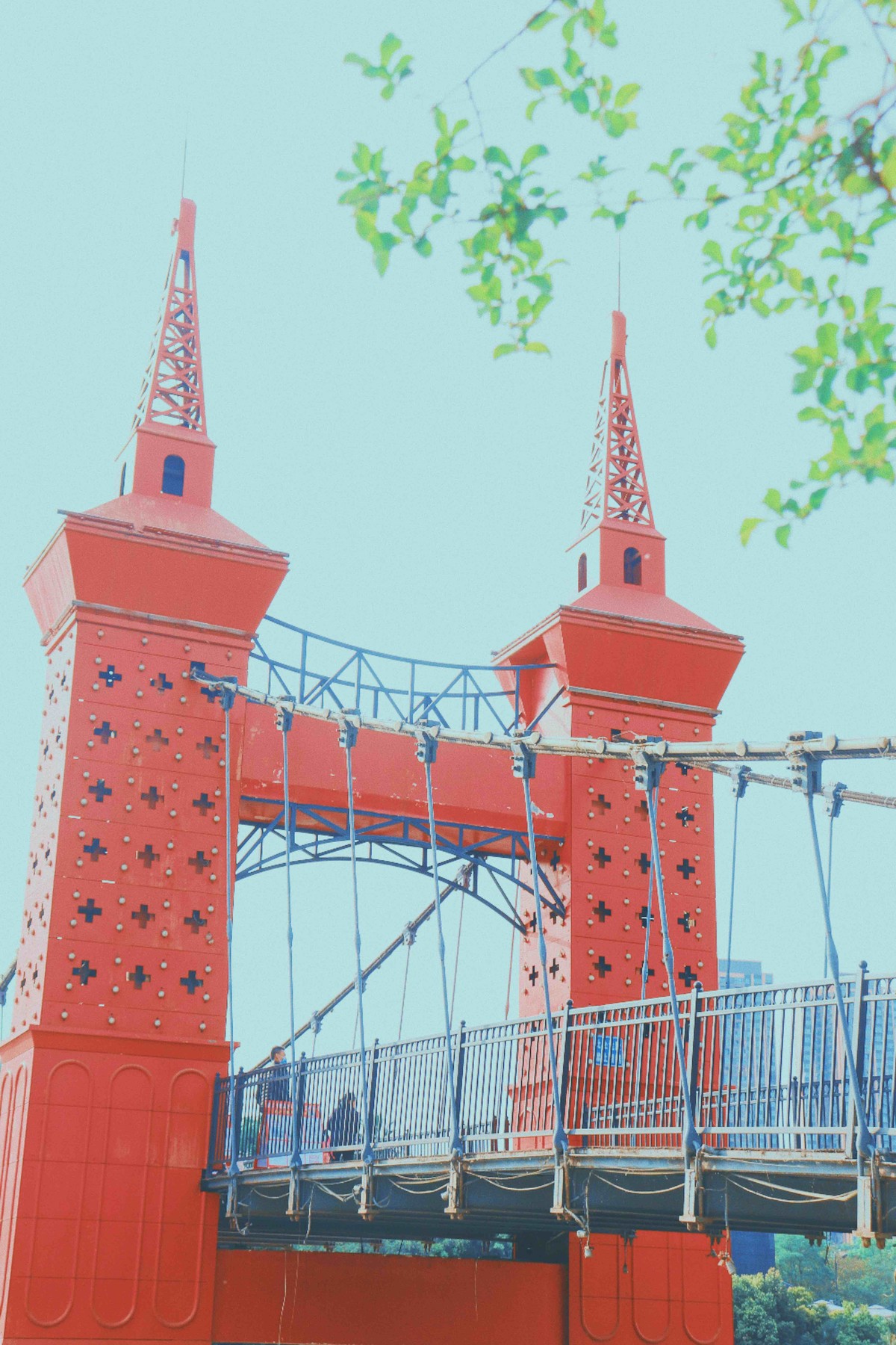 戛纳湾风情廊桥同样横跨锦江,也是一座人行天桥,红色、铁索、尖顶……诸多元素让其特别有“英伦范儿”,被不少网友称为可以“假装在欧洲”。其实,戛纳湾风情廊桥已经建成几年了,不久前社交平台上流传的几组照片,让这里也一跃新晋网红打卡地。