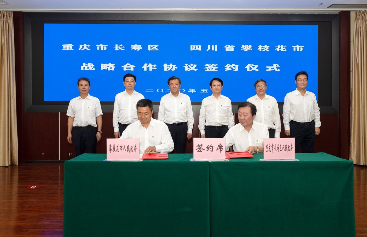 5月14日,攀枝花市与重庆市长寿区签订战略合作协议,缔结为友好市区。同时,两地围绕钒钛钢铁产业、康养产业达成两项专项合作协议。