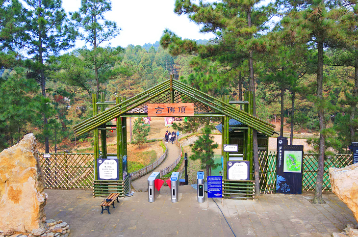 古佛顶旅游景区位于威远县新场镇,占地面积6.5平方公里,距威远县城16公里,距成都市区约140公里,紧邻蓉遵高速、内荣高速和成自宜高铁。该项目于2020年10月开始进行提升改造,总投资1.8亿元,建设游客中心、盐煤古道博物馆、古佛顶碉楼、景区停车场、旅游厕所、游步栈道、休闲平台、仿建古道客店等,景区目前正在积极争创国家AAAA级旅游景区。