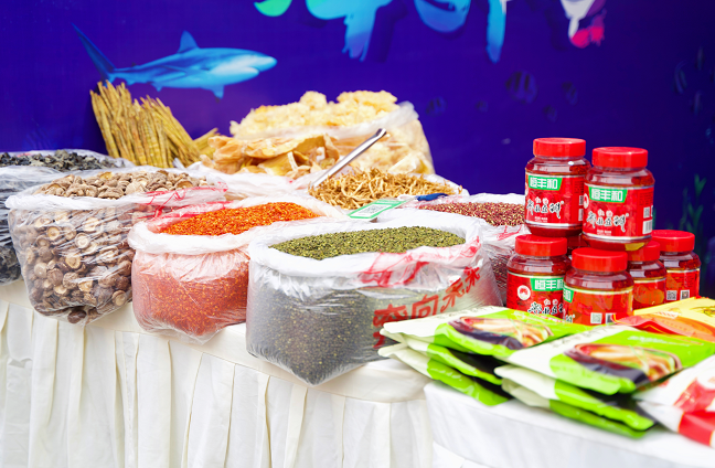 “除了把优质的海鲜水产、瓜果蔬菜、高端食品汇聚到威远,像威远本地无花果、早仔姜这些农副产品,也将能通过我们的平台销售至全国各地。”王捷指着展柜的农副产品说。