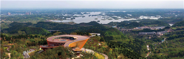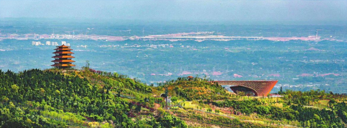 ▲登“城市之眼”丹景台,远眺天府国际机场,触摸东部新区脉动。 成都龙泉山城市森林公园管委会供图