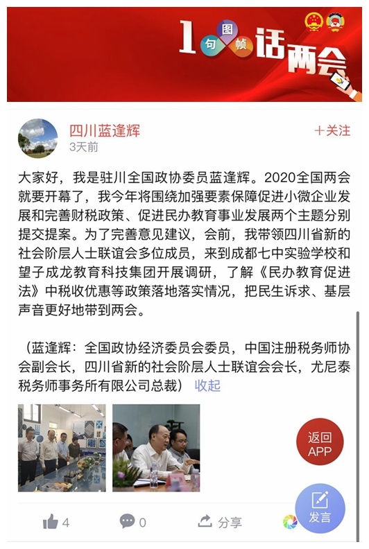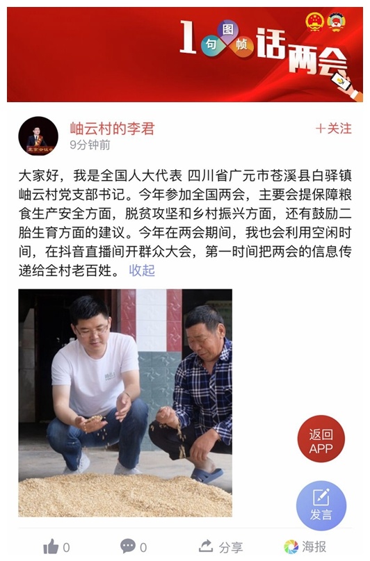 看,活动才刚刚启动,全国人大代表李君和全国政协委员蓝逢辉已经积极参与,发布了他们的关注热点,快来和他们聊聊吧。