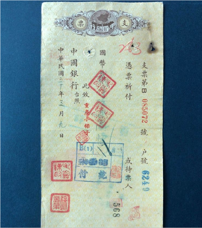 (毛嘉谋签发的银行支票)