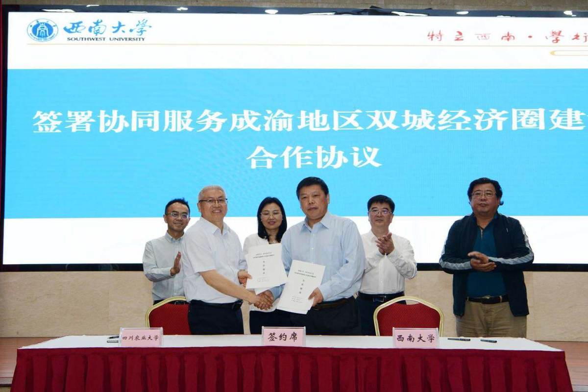 西南大学与四川农大历史相通、地缘相近、文脉相似、血脉相连、心意相契,共同肩负着推动农业农村现代化、服务建设成渝双城经济圈等战略使命,将秉持立德树人初心,牢记强农兴农使命,将在人才培养、科学研究、社会服务和国际化办学等方面开展合作,合力推动人才培养互联互通,合力推动学术资源交汇交融,合力推动转化平台互利共赢。