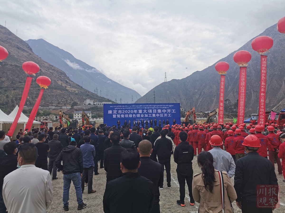5月16日,康定市2020年重大项目集中开工暨鸳鸯坝绿色锂业加工集中区开工仪式在该市姑咱镇鸳鸯坝举行。