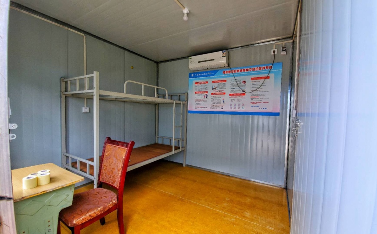 值得一提的是,每位学生进学校后,将要到所属学院领取宿舍出入卡和一个装有口罩、体温计、消毒湿巾纸的爱心包。针对部分行李较多的学生,该校还调动3辆巡逻车,帮助有需要的学生将行李从校门口拉送至宿舍楼下。同时,在该学校还设置有预检分诊处、隔离观察室,室内配备有空调、一张架子床和一套桌椅,在每个观察室旁边还配有一个单独的卫生间。观察室所在的小院子里,布满了绿色植物。