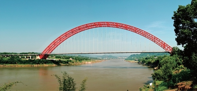 2004年建成,为460米中承式钢管混凝土拱桥,为同期同类桥型世界最大跨度。被列入“世界百座名桥”。