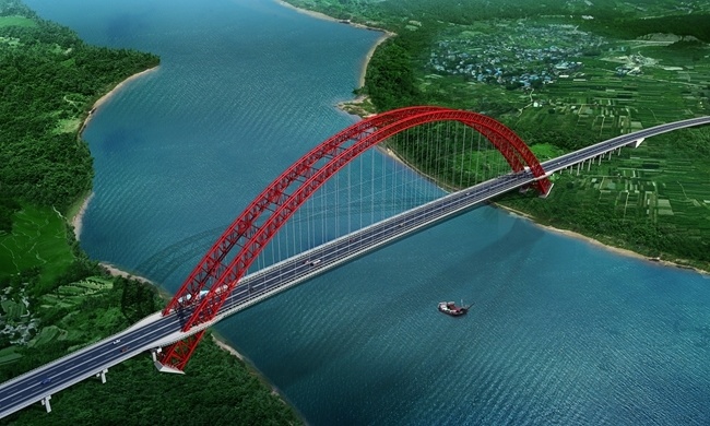 在建,全长1035米,主桥为575米(净跨548米)的中承式钢管混凝土拱桥,是世界最大跨径的拱桥。