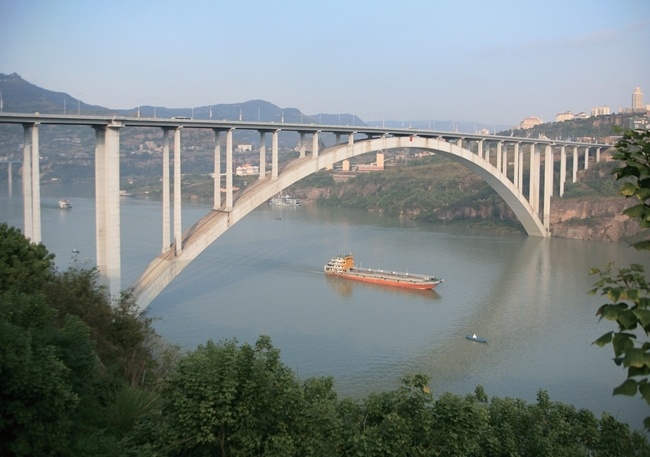 1997年建成,为420米钢筋混凝土箱型拱桥,为当时同类桥型世界最大跨度。采用钢管混凝土劲性骨架成拱,为大跨度钢筋混凝土拱桥提供了建造方法。获得国家科技进步一等奖、中国土木工程詹天佑奖、国家优秀设计金奖、国家优质工程(鲁班奖)银奖等奖项,被评为首届“中国十佳桥梁”。