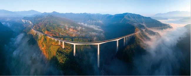 位于“云端上的高速”雅西高速上,2012年建成,采用钢管混凝土组合结构桥墩,最高墩182.5米,建成时为同类结构桥梁的世界第一高墩。获得中国土木工程詹天佑奖。