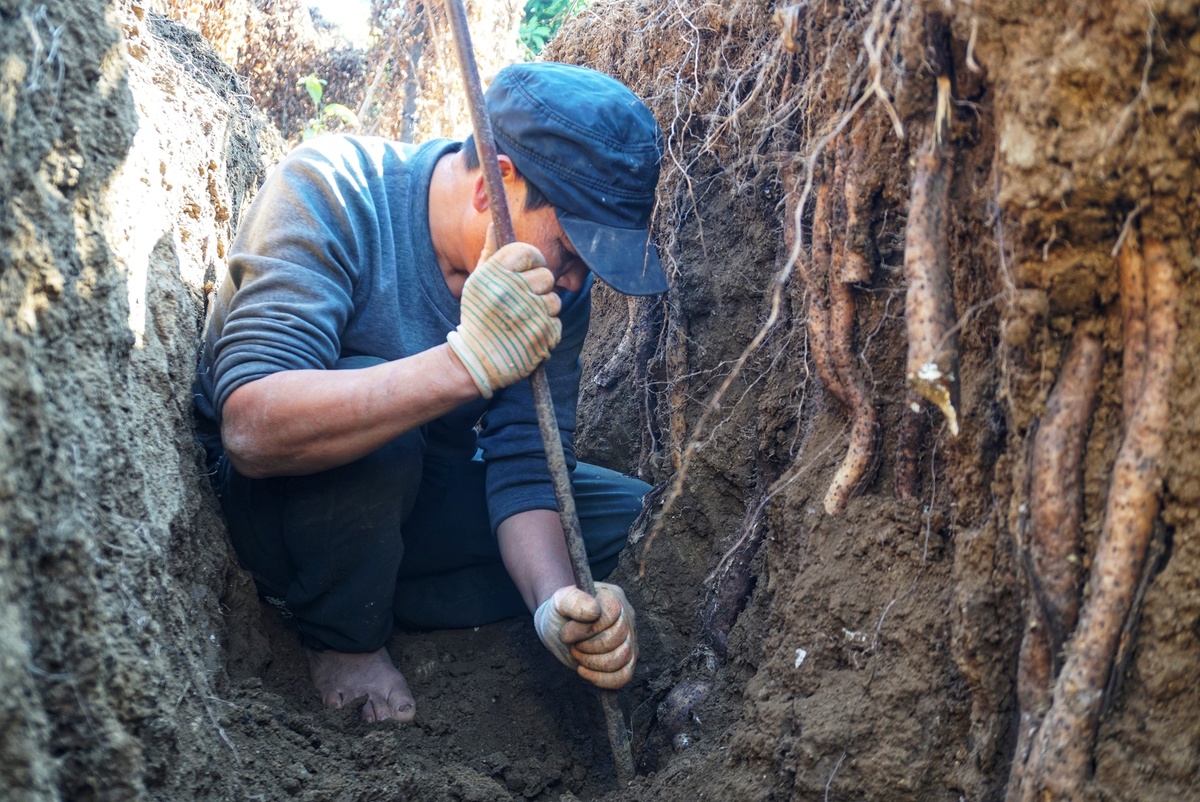 1月的攀枝花,正是山药成熟上市的季节。晌午时分,攀枝花市西区格里坪镇格里坪村村民倪兴芬顾不上吃饭,在自家山药地里挥锄,刚接到四笔网络订单,得抢时间发货。