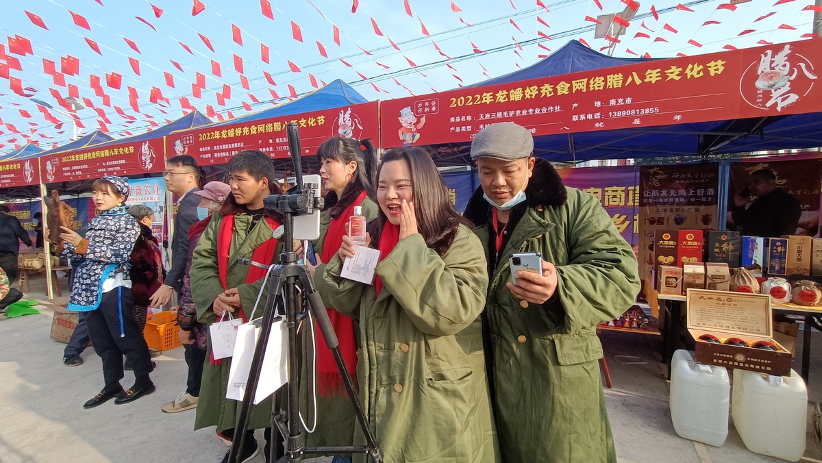 “疫情防控常态化下,我们把腊八节搬到了网上,跟大家分享丰收的喜悦和过年的喜庆,以传统民俗文化活动助推乡村产业振兴、文化振兴。”龙蟠镇党委书记孙伟讲道,尤其是借网络直播的力量,将家乡的特产、年货推广到全国各地,让在外的游子看到家乡的新兴气象。