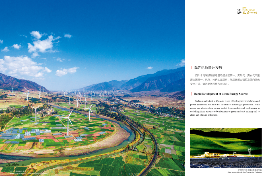 Sichuan ranks first in China in terms of hydropower installation and power generation, and also first in terms of natural gas production. Wind power and photovoltaic power started from scratch, and coal mining is switching from extensive development to green and safe mining and to clean and efficient utilization.