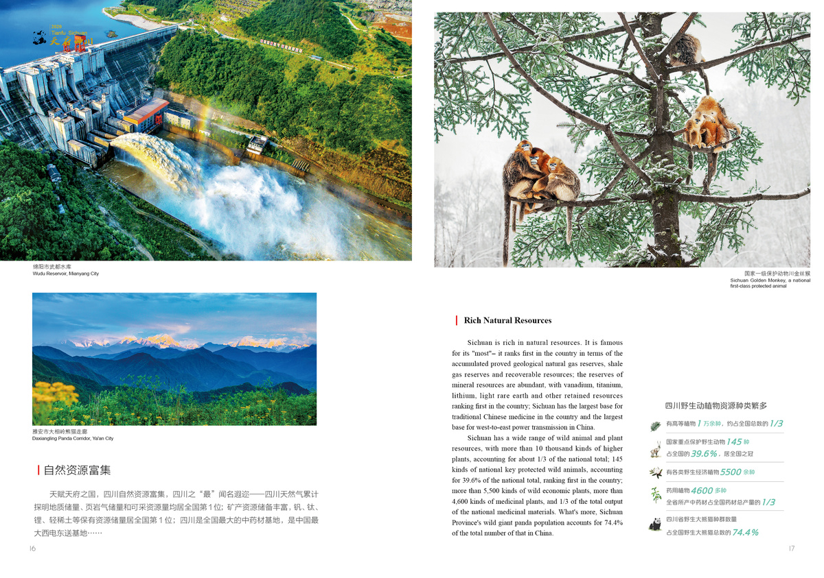 Sichuan is rich in natural resources. It is famous for its "most"-- it ranks first in the country in terms of the accumulated proved geological natural gas reserves, shale gas reserves and recoverable resources;