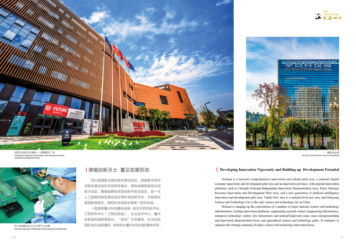 Focusing on key elements of scientific research, talent and mechanism, Sichuan has carried out solid innovation and creation. It promotes innovations in terms of science and technology, industry, enterprise, product and brand in an all-round way, thus shaping a leading development that relies more on innovation and gives full play to first mover advantages.