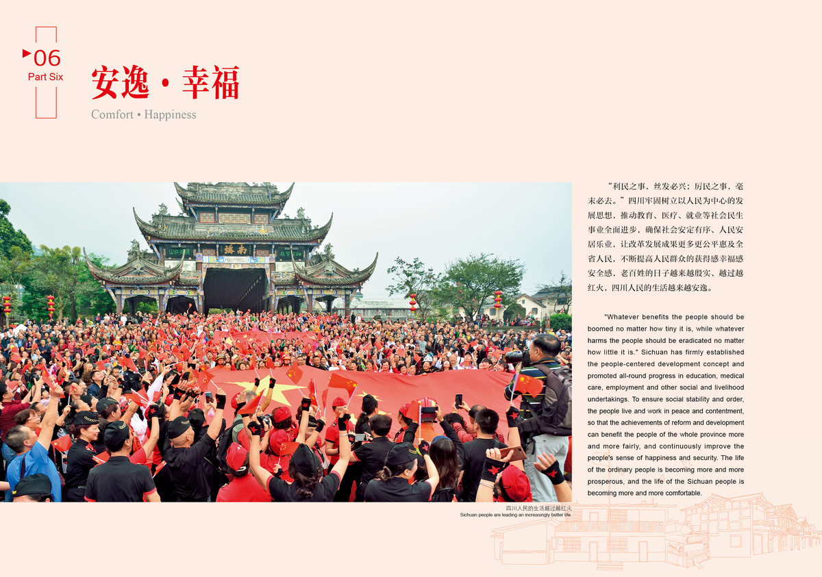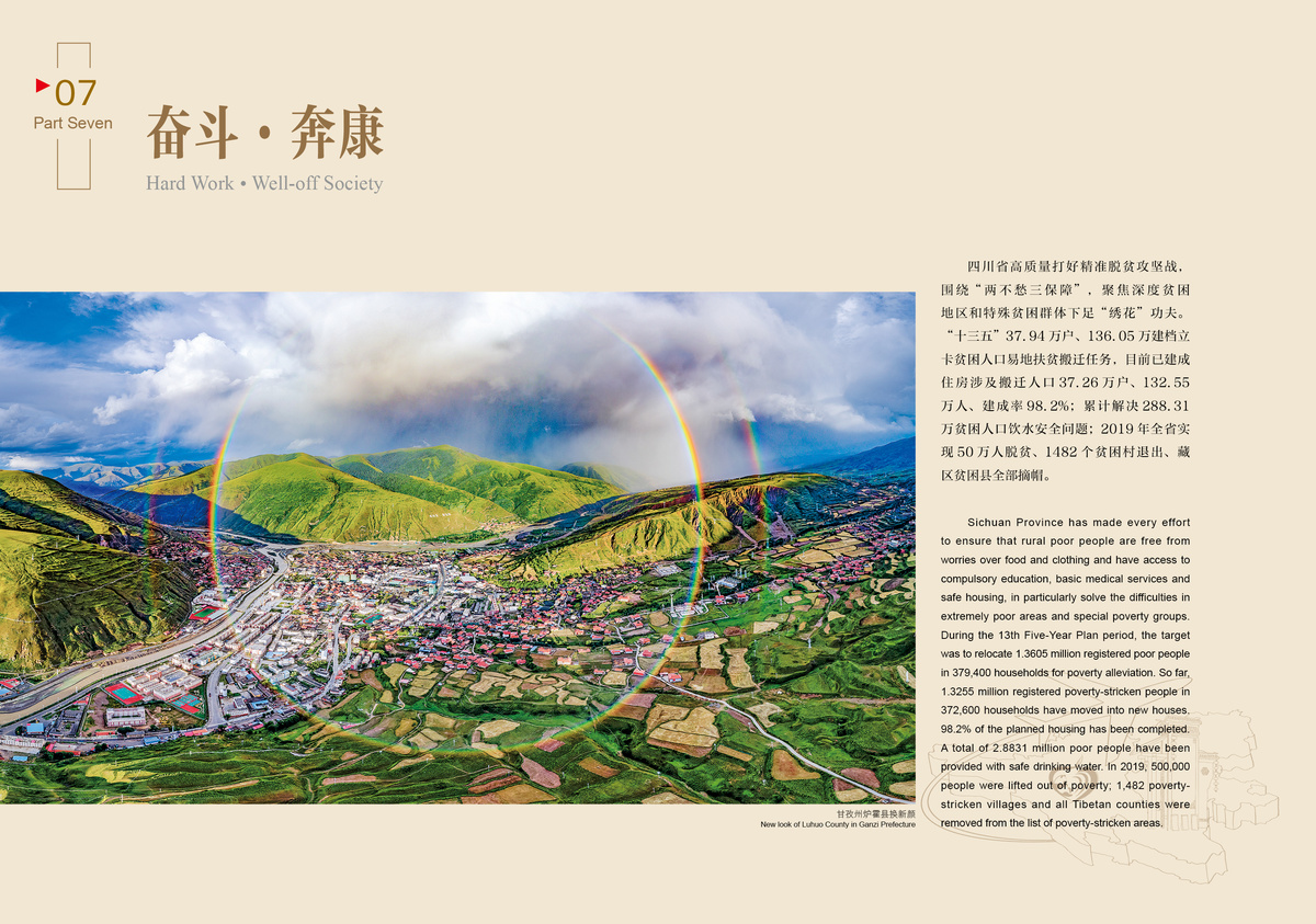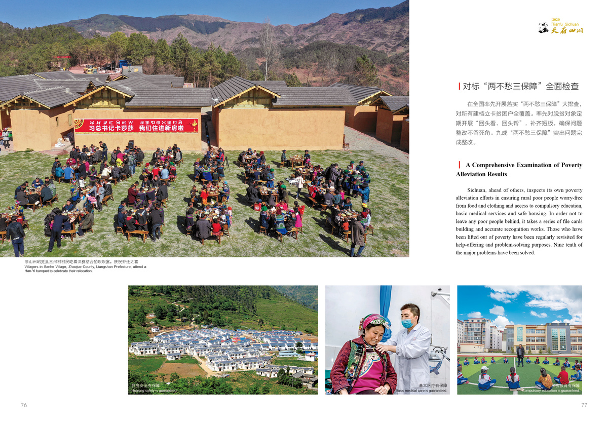Sichuan Province has made every effort to ensure that rural poor people are free from worries over food and clothing and have access to compulsory education, basic medical services and safe housing, in particularly solve the difficulties in extremely poor areas and special poverty groups.