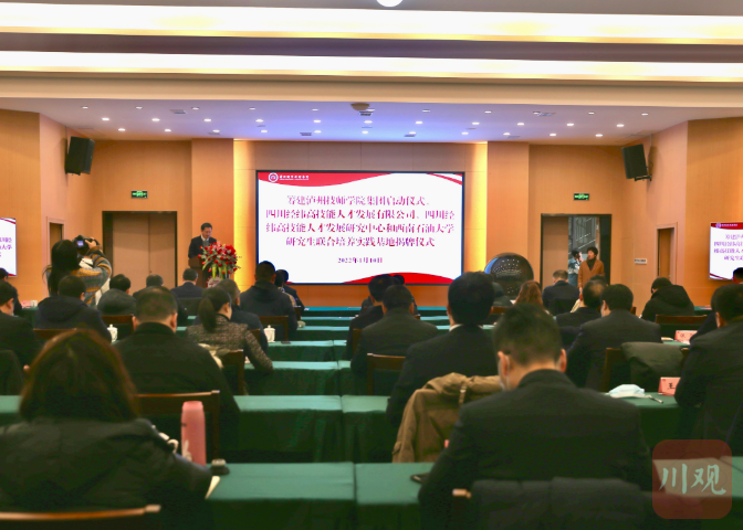 1月10日,筹建泸州技师学院集团启动仪式、四川经纬高技能人才发展有限公司、四川经纬高技能人才发展研究中心成立揭牌仪式和西南石油大学研究生联合培养实践基地揭牌仪式在泸州职业技术学院举行,为推动高技能人才队伍建设提供了“泸州方案”。