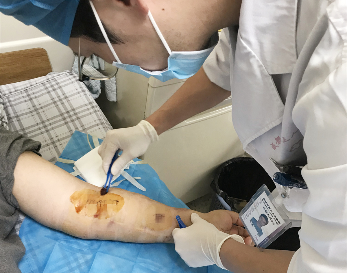 身患尿毒症的华爷爷,必须定期接受血液透析治疗。为满足长期透析需求,医生在华爷爷的手臂上建立了自体动静脉内瘘。这条通道正式启用前,透析借由大腿股动脉处的临时通道完成。然而,近期华爷爷到成都市第三人民医院就医时,医生发现他腿上的血管发生了感染;手臂上建立的通道又难以达到透析要求。