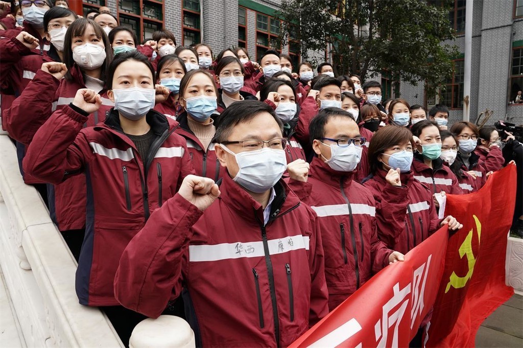 由四川各地驰援湖北的医护人员共同演唱、演绎
