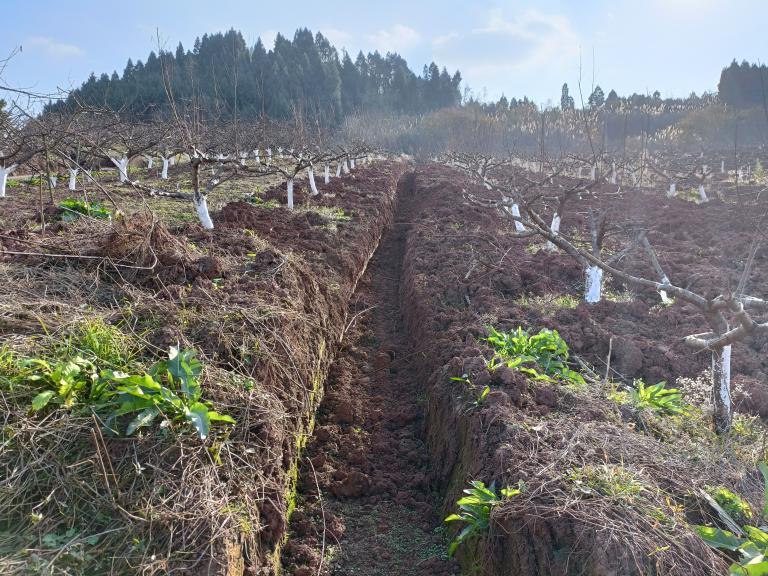冬日的暖阳徐徐升起,2022年1月上旬,五琅坝村果园里有不少村民在劳作,清园、刷白、挖沟、修枝,忙得不亦乐乎。