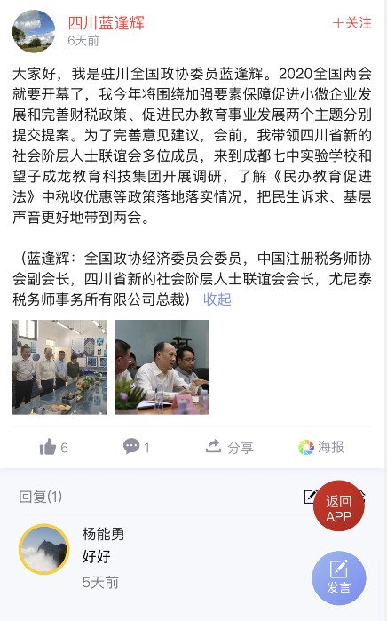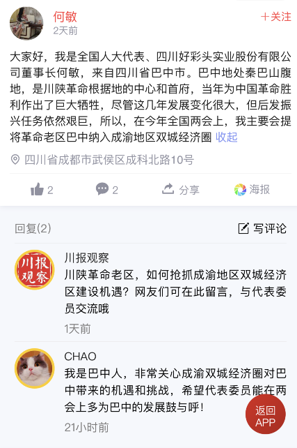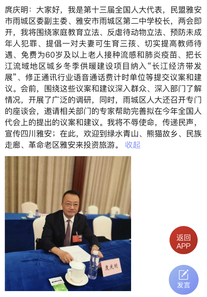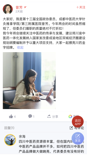 今天,全国政协十三届三次会议在京开幕。值此之际,我省不少全国人大代表、住川全国政协委员纷纷入驻 “一句|图|帧话两会”微互动活动,与网友并分享自己的履职心声和观点建议。