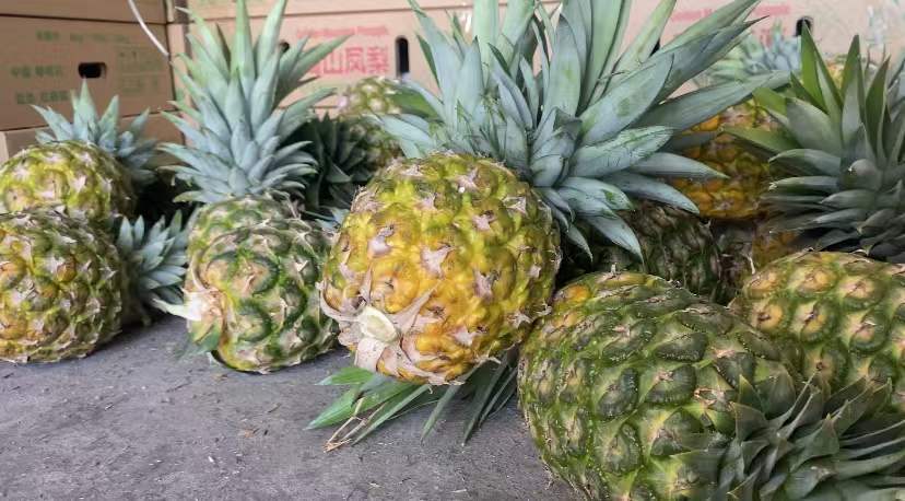 驱车盘山而上,记者来到金沙村的金菠萝种植基地,这里是国内除海南南部之外的又一金菠萝种植地区,共计500余亩,目前正处于上市期。
